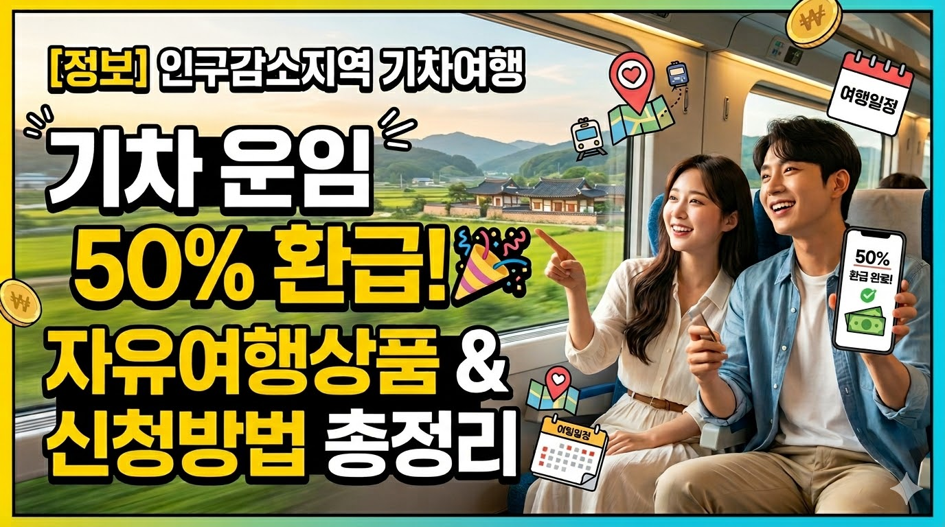 인구감소지역을 방문하는 여행객들에게 열차 운임의 50%를 할인해 주는 제도인데요. 어떻게 신청하고 어떤 지역이 해당되는지 핵심만 쏙쏙 정리해 드릴게요.